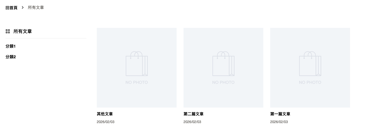 1、「所有文章」:所有文章分類及文章都會顯示於前台