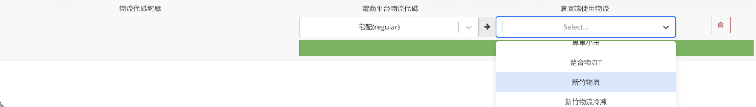 - (2.)接著點擊「倉庫端使用物流」,下拉選單會列出 WMS 後台提供的物流。
