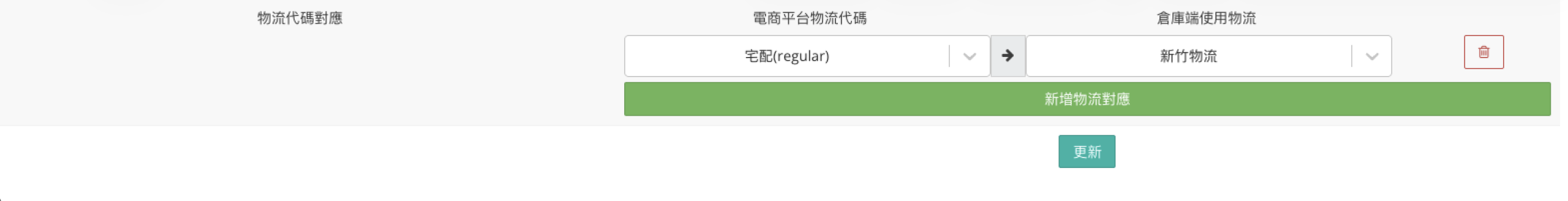 - (3.)以下圖為例代表,當訂單所選物流為「宅配(regular)」時,在 WMS 要使用「新竹物流」出貨,確認設定正確後點擊更新即可。