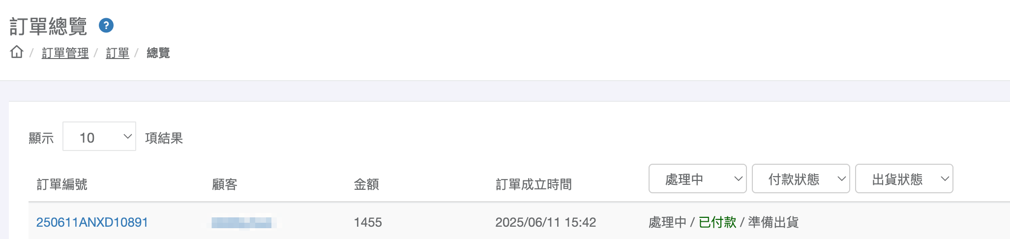 當訂單已建立揀貨單時,訂單狀態會轉為處理中,不符合「新訂單且準備出貨」狀態