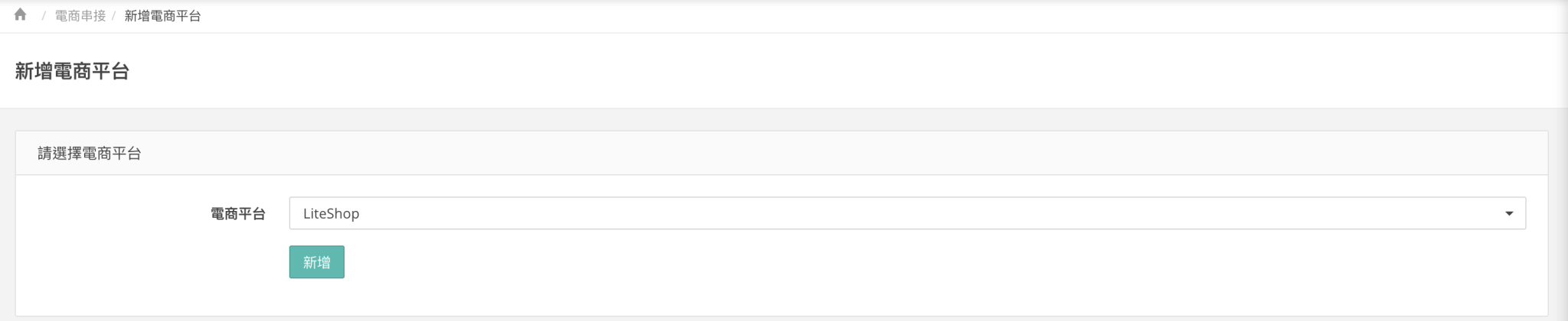 選擇電商平台「LiteShop」,接著點擊「新增」。