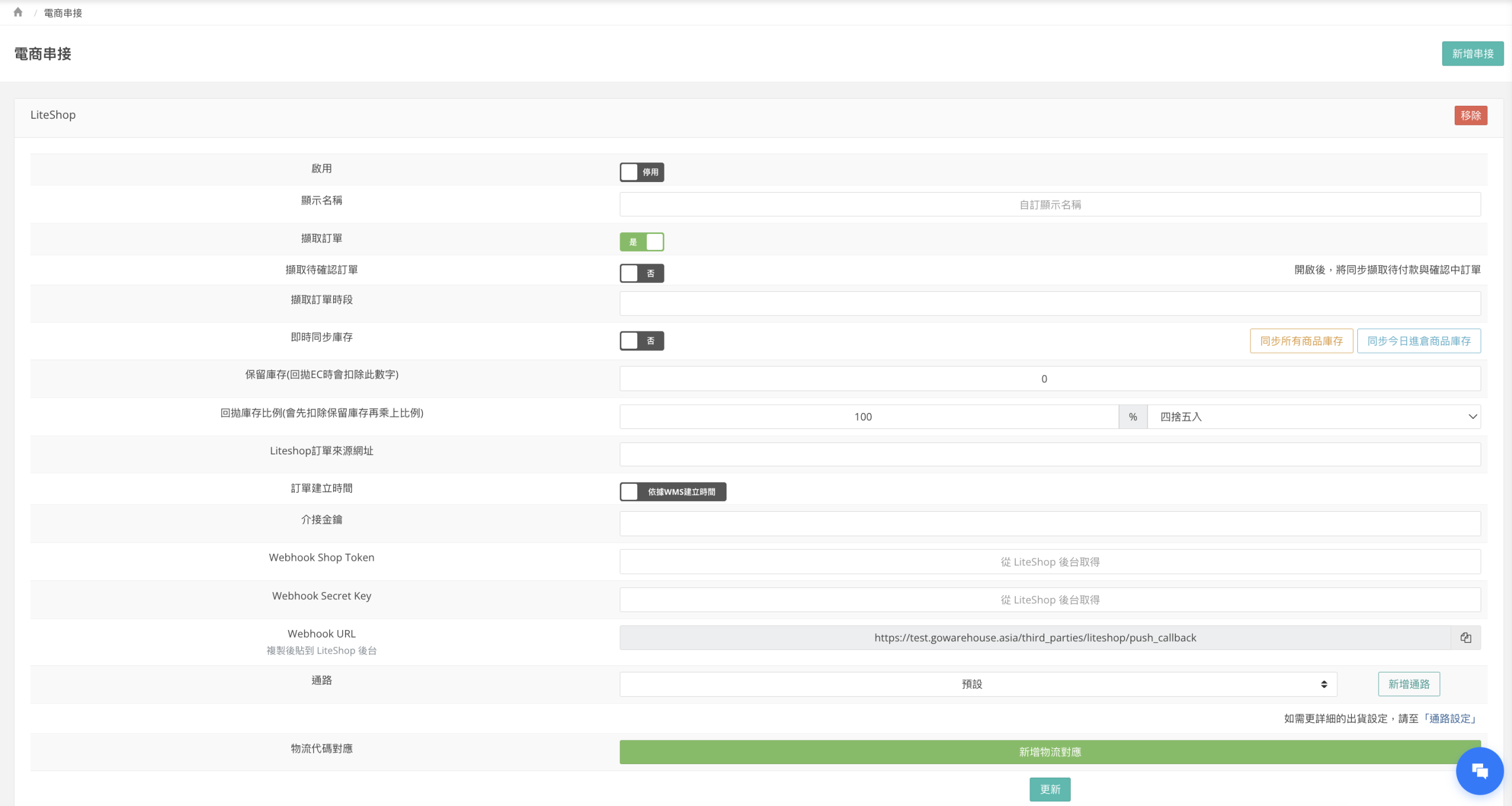 4、即時同步庫存:調整為「是」後,當倉庫商品庫存有異動的時候,系統會更新該商品於 WMS 的庫存同步到 LiteShop ; 調整為「否」則不會因為庫存異動同步 LiteShop 商品庫存