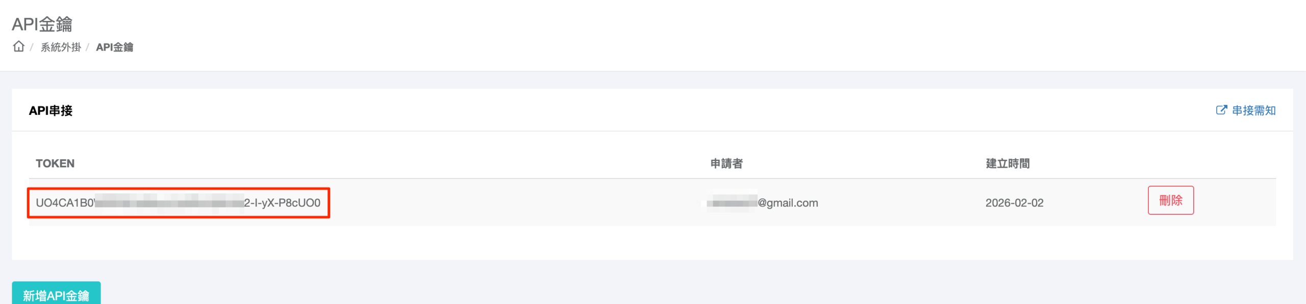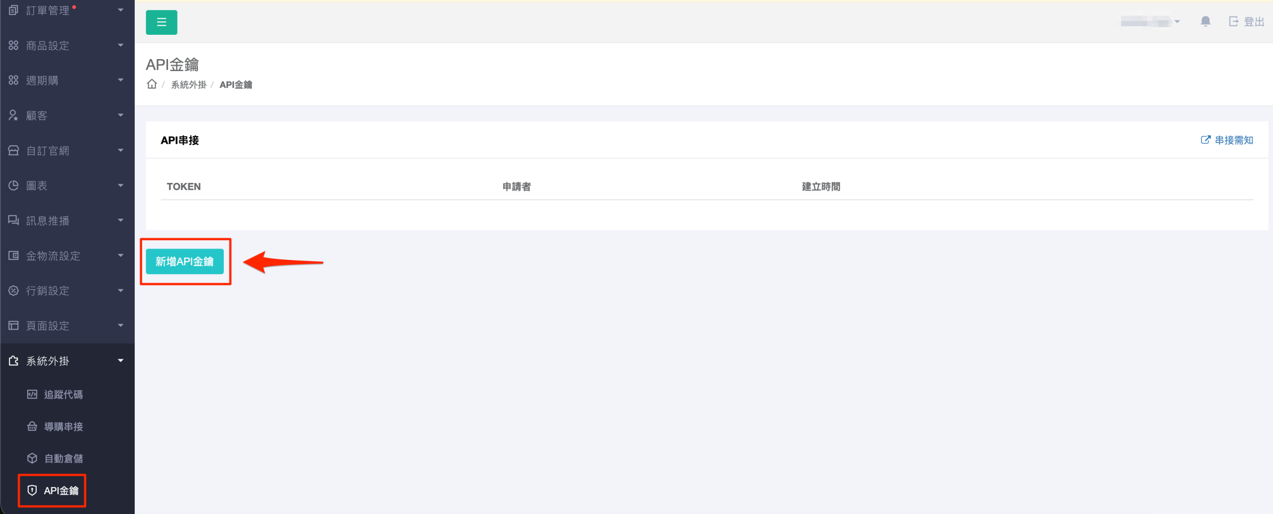 登入 LiteShop 後台,進入「系統外掛>API 金鑰」頁面,新增 API 金鑰