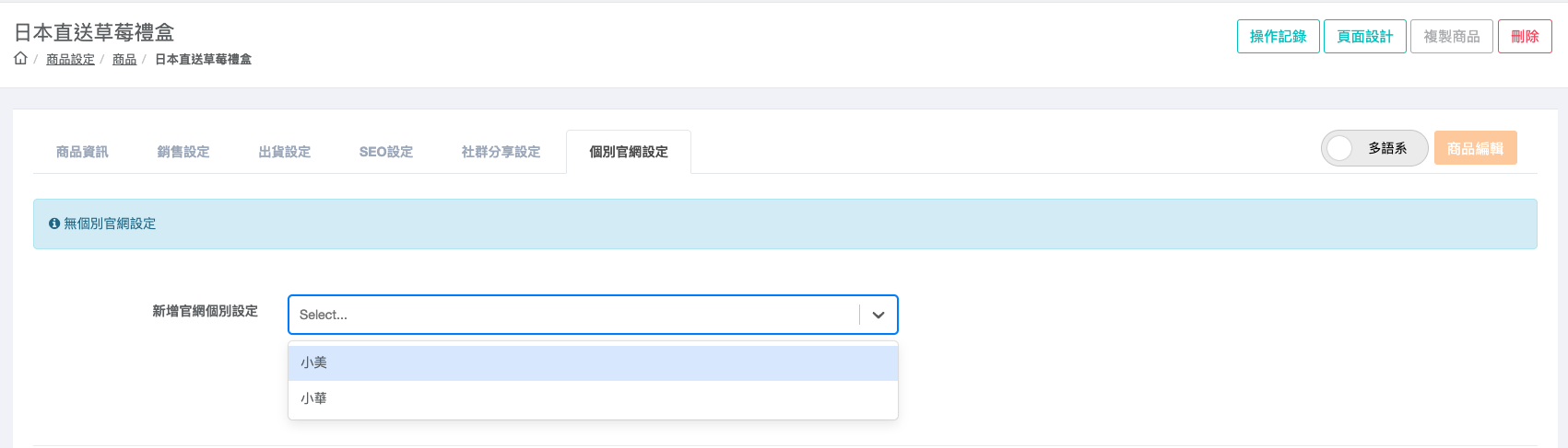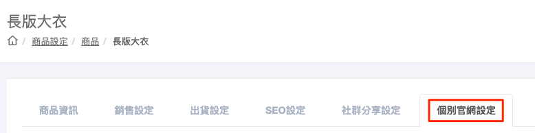 路徑:商品設定>商品總覽>個別官網設定